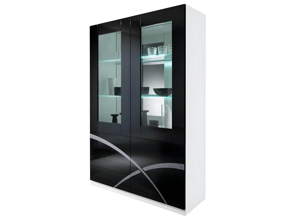 Vitrine 2 Portes Laquée Brillant Blanc et Noir de la gamme Alyssa.