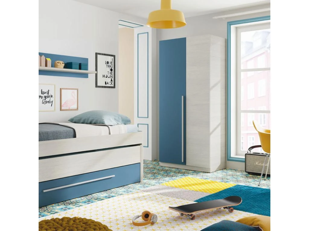 Armoire 200cm. 2 Portes Coulissantes Avec Miroirs Couleur Chêne Clair Et Noir. Collection FOX