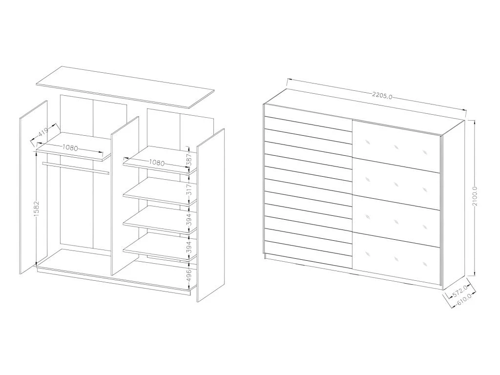 Armoire deux portes coulissantes donc une noire brillante. Cette garde robe vous charmera grâce à ses couleurs tendances et ses finitions soignées.