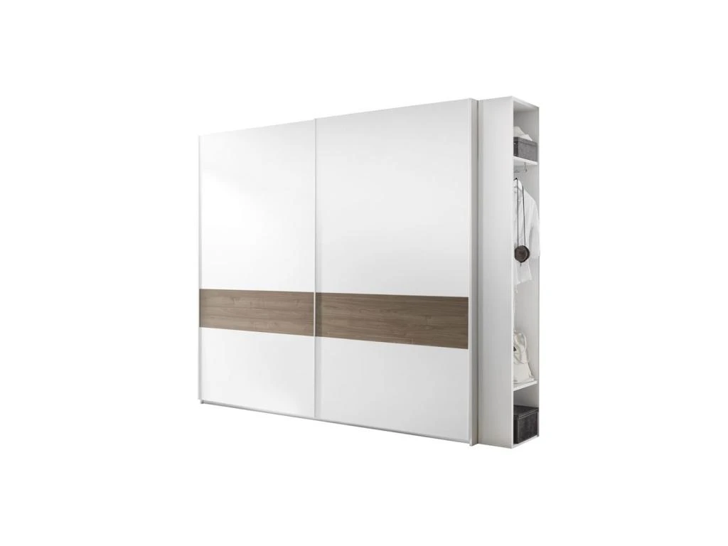 Equipée de 2 portes coulissantes et d ‘un meuble de rangement de côté cette armoire offre une capacité de rangement satisfaisante, les 2 portes ne nécessitent aucun dégagement pour être ouvertes.
