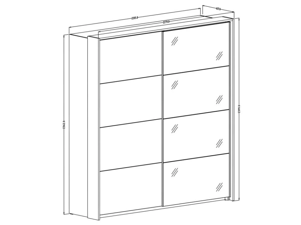- DIMENSIONS : L 227,9 x P 63,7 x H 239,9 cm.