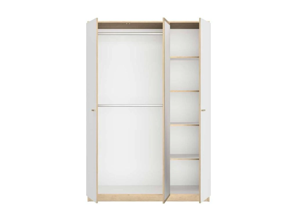 Armoire 3 Portes 1 Miroir Blanc/Chêne Blond – MAILLE