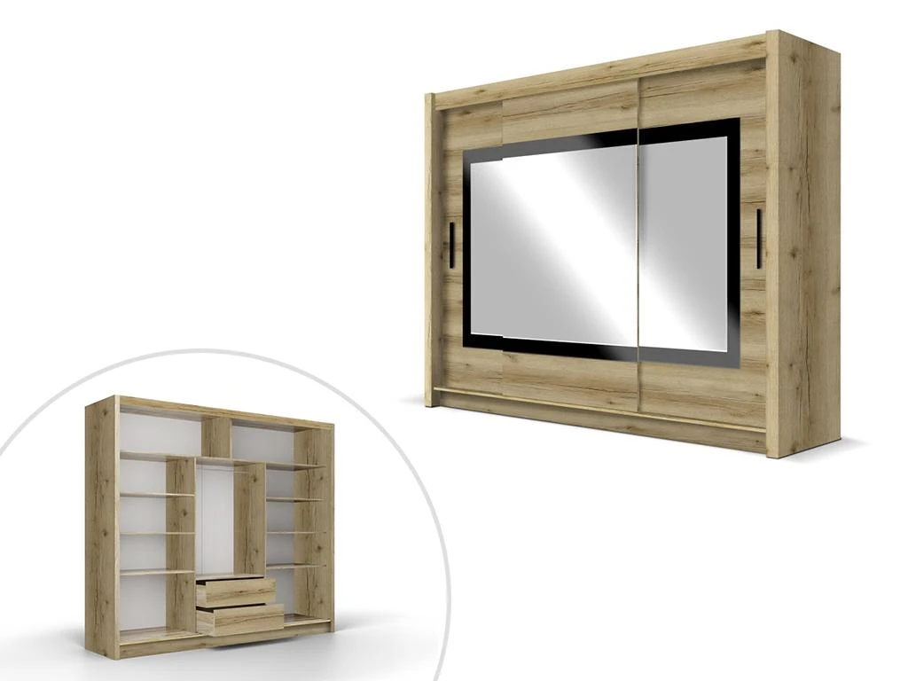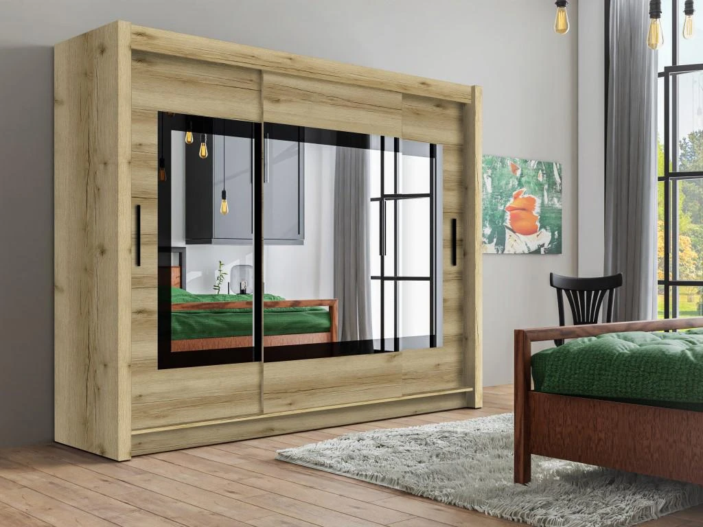 L’armoire AUTLAN vous offre un bel espace de rangements grâce à sa grande penderie et ses nombreuses lingères. Equipée de deux grands miroirs sur les portes coulissantes, vous pourrez facilement vous admirer de haut en bas dans vos plus belles tenues !