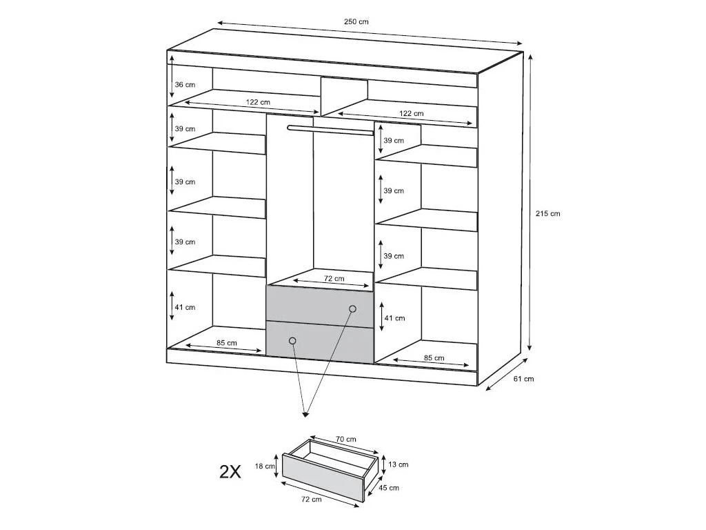 Charge maximale d’un tiroir : 3kg