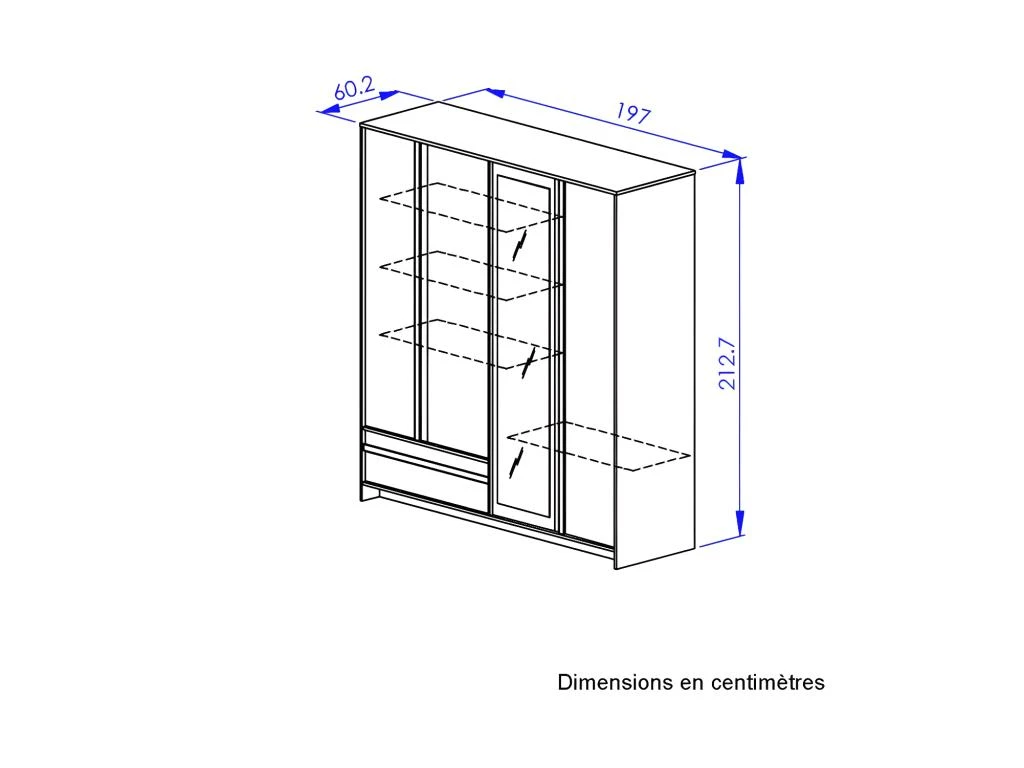 Pour apporter de la chaleur dans votre chambre cette armoire dressing propose un mariage de fintion Chêne clair au rendu plus vrai que nature et d’éléments façon laque noire, cette combinaison de teinte lui assure aussi une intégration aisée avec le code couleur de votre pièce.