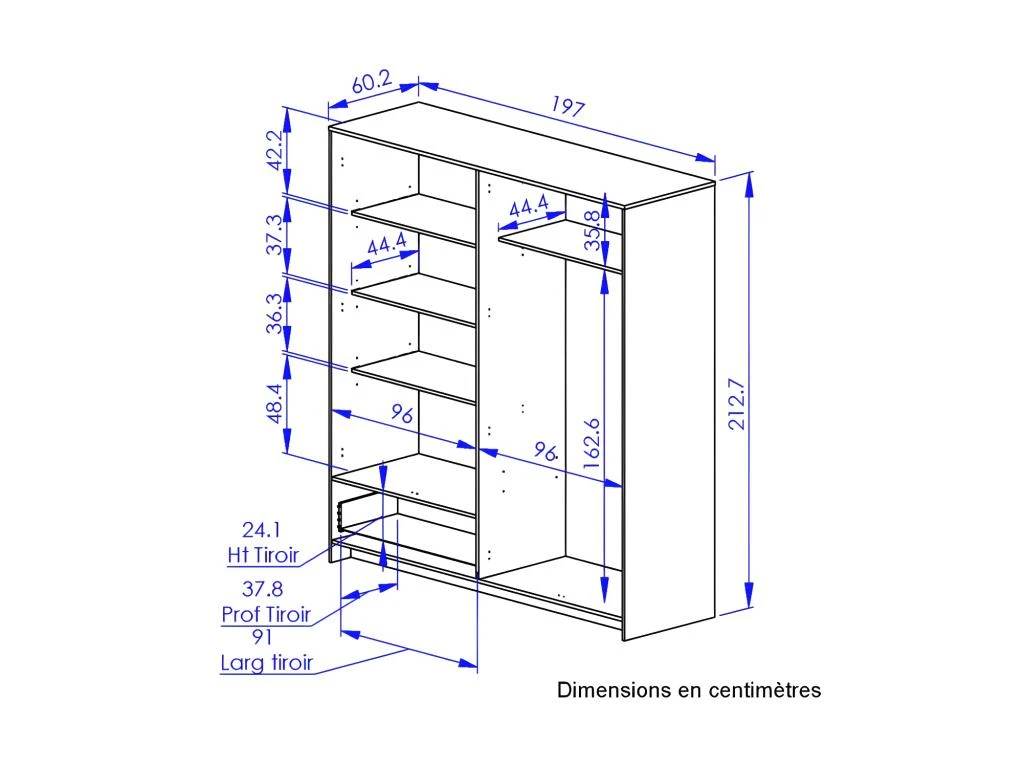 La partie de droite met à votre disposition 2 tringles de penderie permettant de suspendre vos vêtements.