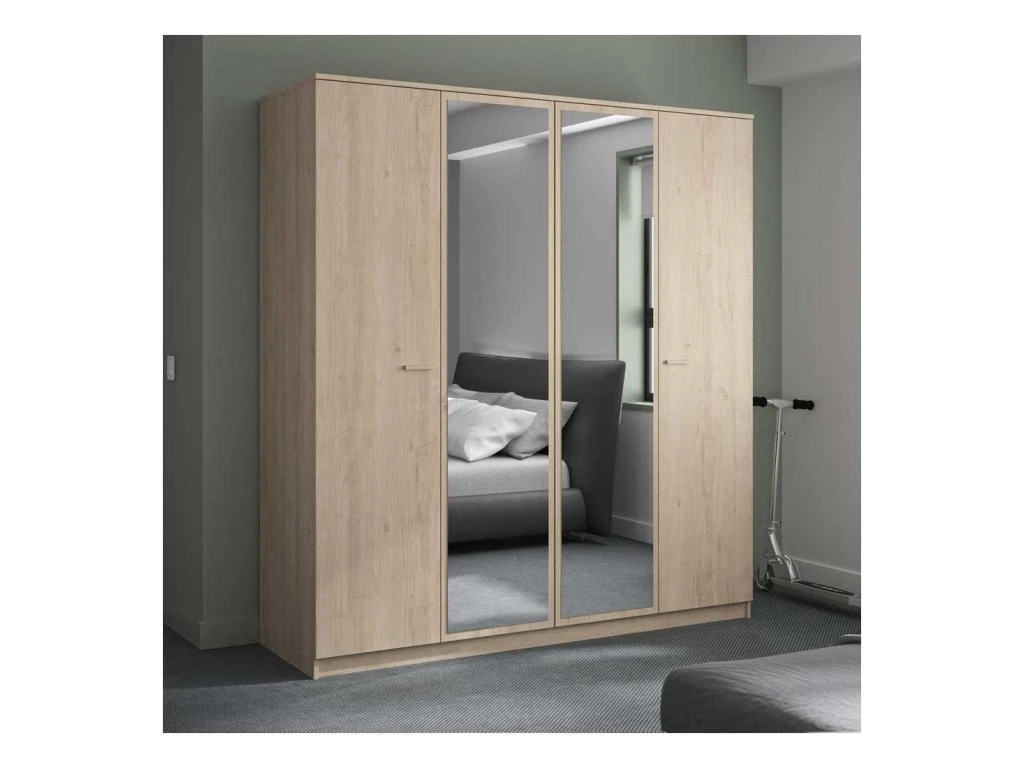 Pour un apport de luminosité dans votre chambre à coucher 2 des portes sont habillées d’un miroir, elles complètent ainsi la clarté de la finition Chêne Blond.