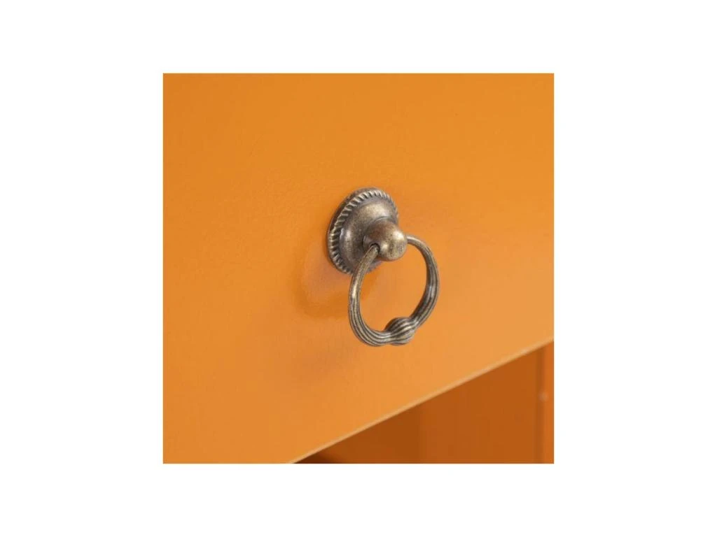 La teinte orange se marie aux sculptures, parfaitement raccord avec le style oriental de ce meuble multifonction sobre et élégant.