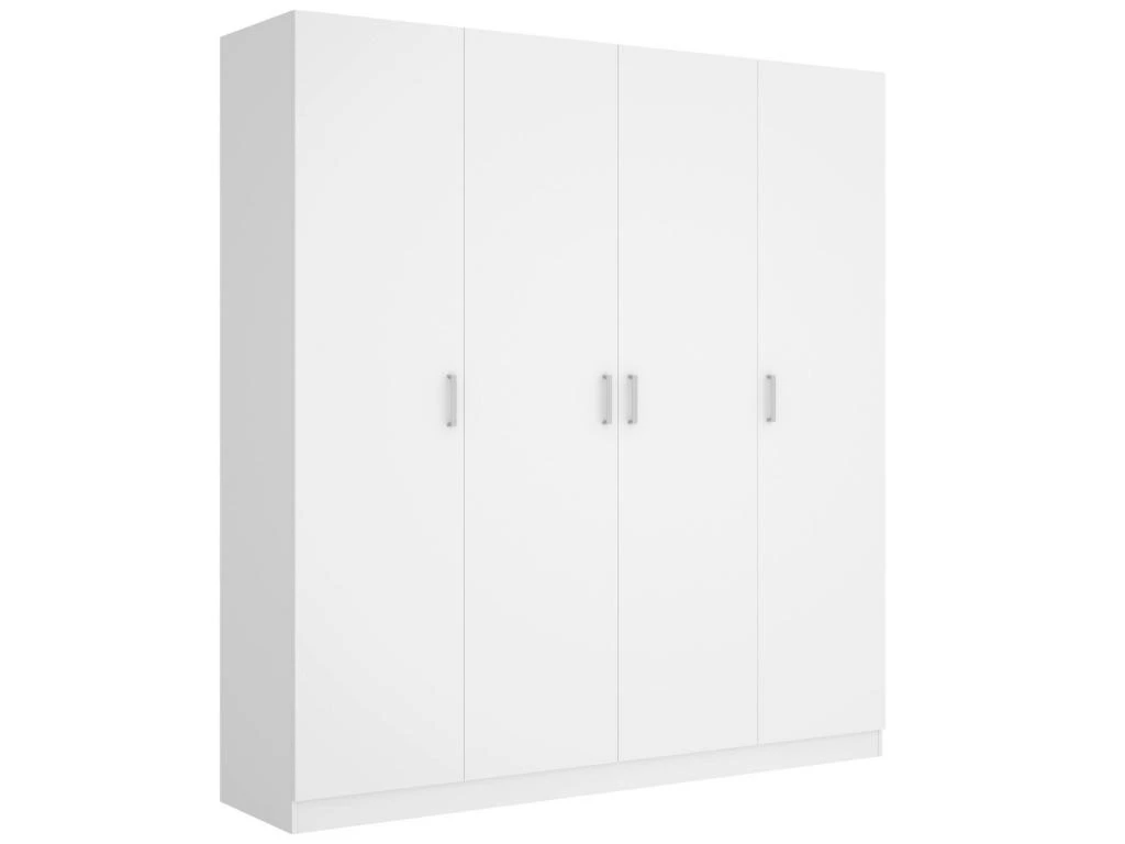 STRUCTURE ET UTILISATION – Armoire à quatre portes battantes, composée d’une zone centrale avec deux portes, d’une tringle à vêtements et d’une étagère et de deux zones latérales avec quatre étagères de chaque côté – Grâce à l’organisation interne de ses espaces, elle offre un grand espace de rangement – Toute la structure du meuble est parfaite pour meubler une chambre double, une chambre d’enfants ou une chambre d’amis de manière peu encombrante – Les étagères internes combinées à la tringle à vêtements vous permettront de ranger vos vêtements et robes de manière ordonnée.
