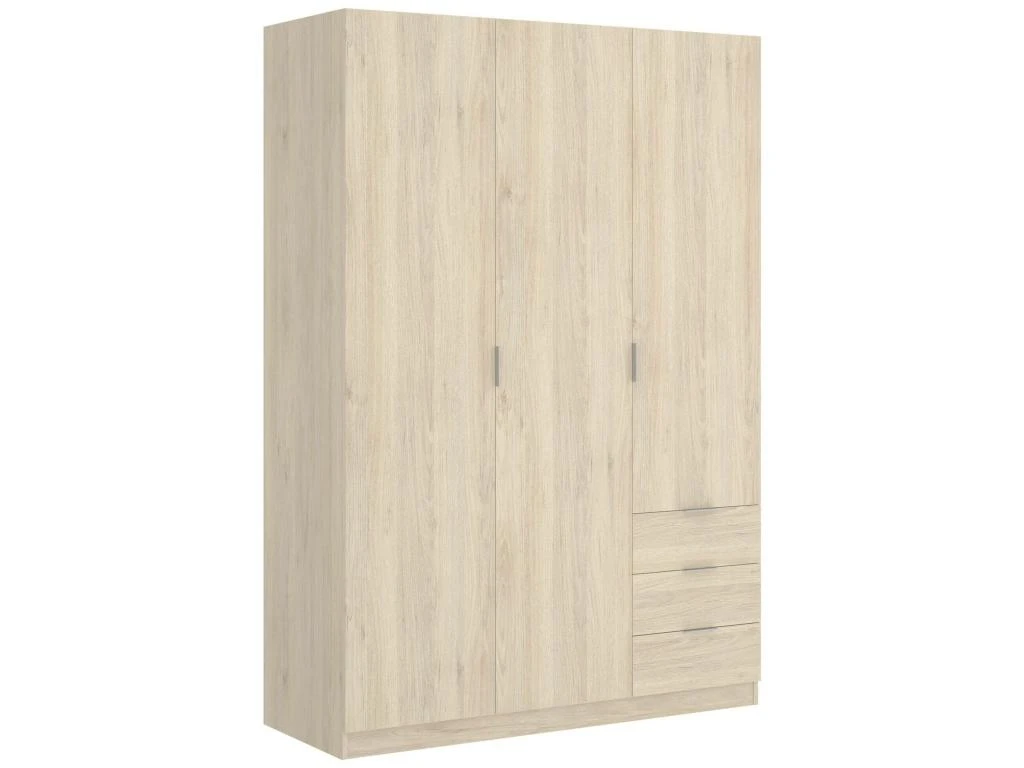 STRUCTURE ET UTILISATION – Armoire complète avec trois portes battantes avec quatre étagères et une tringle à vêtements et trois tiroirs – Grâce à l’organisation interne de ses espaces, elle offre un grand espace de rangement – Toute la structure du meuble est parfaite pour un ameublement peu encombrant une chambre parentale, une chambre d’enfant ou une chambre d’amis – Les étagères intérieures associées à la tringle à vêtements vous permettront de ranger vos vêtements et costumes de manière ordonnée.