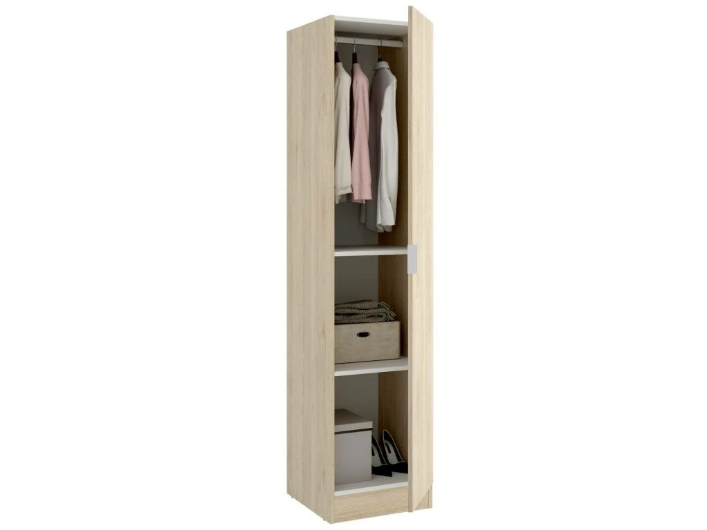 STRUCTURE ET UTILISATION – Armoire avec une porte battante, trois étagères internes et une tringle à vêtements, grâce à l’organisation interne de ses espaces, elle offre un grand espace de rangement – Toute la structure du meuble est parfaite pour meubler une chambre dans un espace- lit double, une chambre d’enfant ou une chambre d’amis – Les étagères intérieures combinées à la tringle à vêtements vous permettront de ranger vos vêtements et vêtements de manière ordonnée.