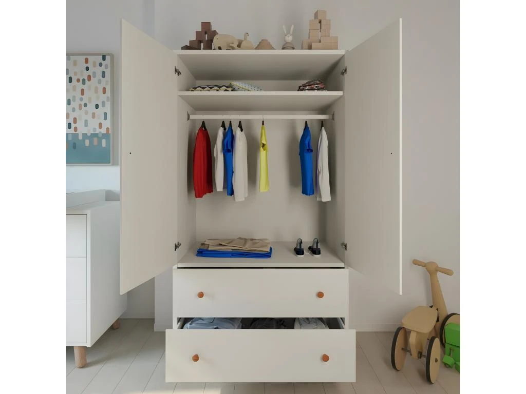 Craquez pour cette armoire enfant Gabby de style scandinave aux couleurs naturelles. Ses lignes épurées apportent de la douceur et lui permettent de s’adapter à tous styles de décoration. Ses poignées sont faciles de prise en main afin d’ouvrir l’armoire en toute simplicité. L’armoire enfant Gabby vous offre un beau volume de rangement avec penderie, étagère et tiroirs pour ranger toutes les affaires de votre enfant. Sa penderie vous permet de suspendre vos plus beaux vêtements sans les froisser.