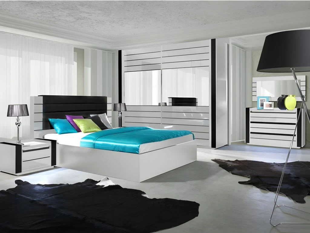 Sublimez votre chambre adulte avec cette magnifique armoire adulte design blanche et noire brillant de la collection LINA.