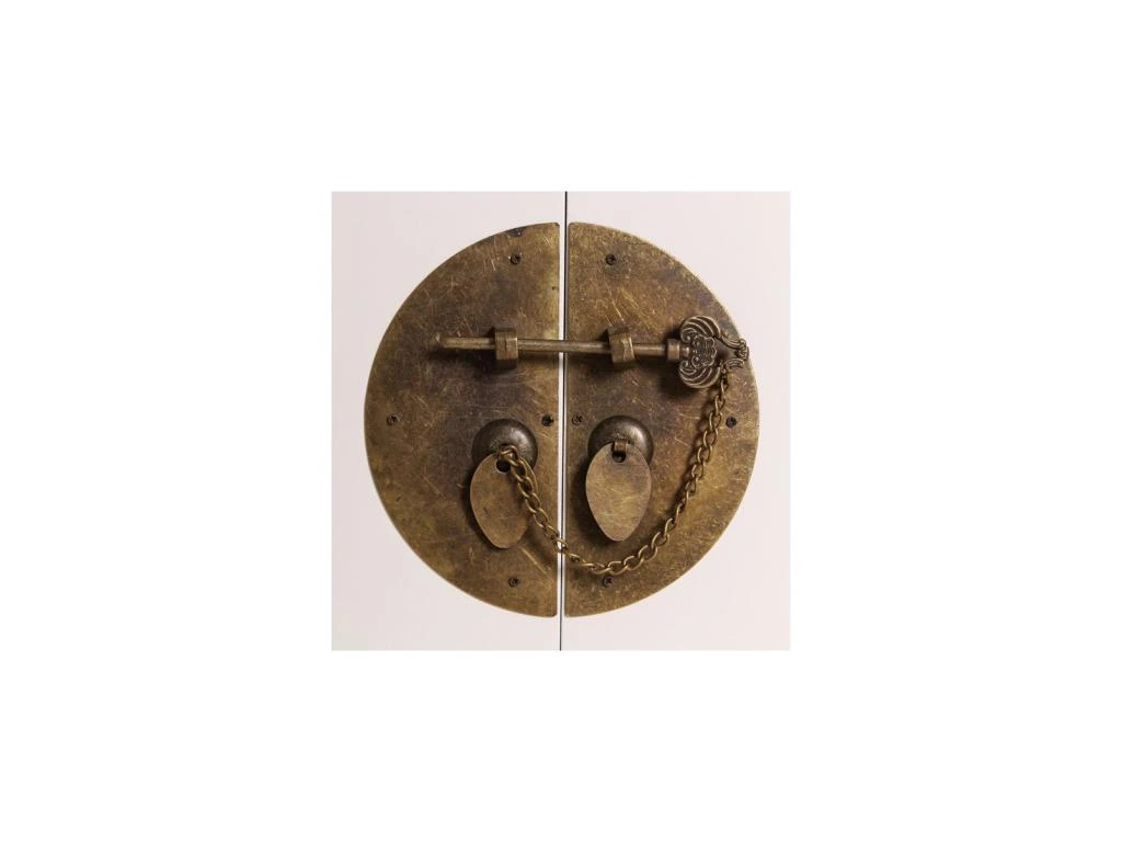 La teinte blanche se marie à la quincaillerie dorée, parfaitement raccord avec le style oriental de ce meuble multifonction sobre et élégant.