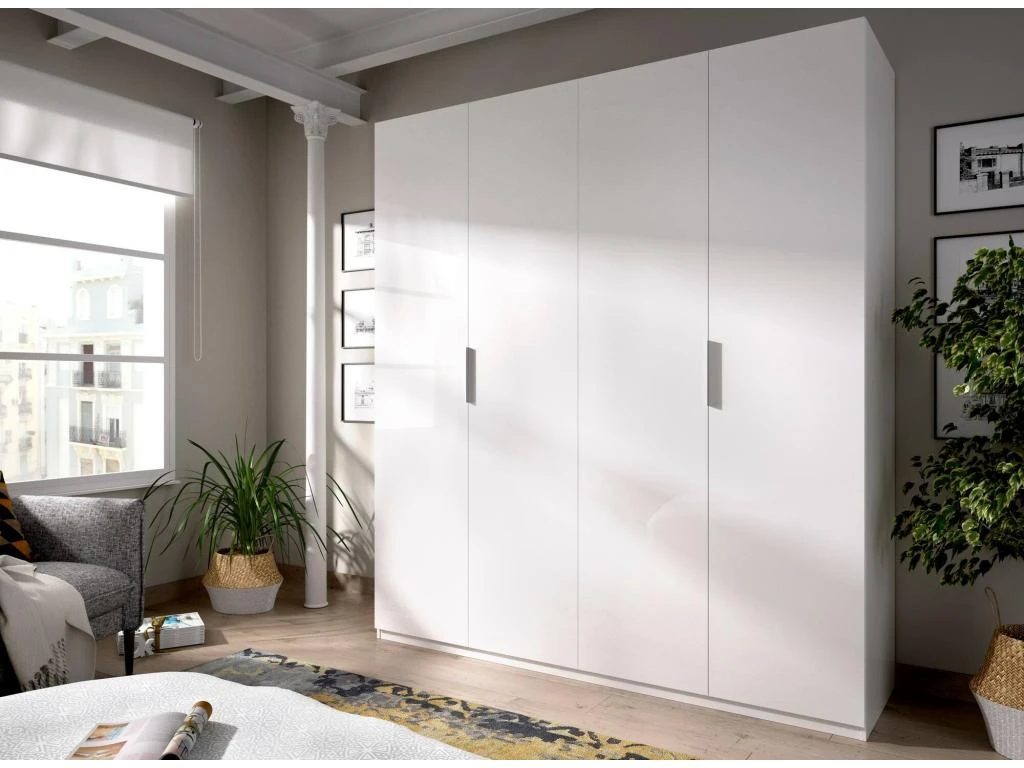STRUCTURE ET UTILISATION – Armoire complète avec quatre portes battantes avec deux compartiments et une barre de cintre de chaque côté, grâce à l’organisation interne de ses espaces, elle offre un grand espace de rangement – Toute la structure du meuble est parfaite pour meubler un espace – économiser chambre parentale, une chambre d’enfant ou une chambre d’amis – Les étagères intérieures combinées à la tringle à vêtements vous permettront de ranger vos vêtements et vêtements de manière ordonnée.