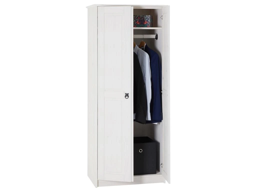 … possède 2 grandes portes avec des poignées décoratives en métal de coloris noir. Cette armoire en bois trouvera aisément sa place dans votre chambre ou encore votre entrée. A l’intérieur vous y trouverez une penderie avec 1 tringle afin de suspendre vos chemises, vestes ou pantalons ainsi qu’une tablette en hauteur afin d’y ranger vos affaires. Cette garde robe au style mexicain apportera un charme à la fois rustique et intemporel à votre intérieur. N’hésitez pas à compléter votre mobilier avec les autres meubles de la gamme RESIDENCIA !