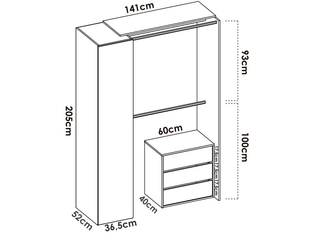 DIMENSIONS EN CM – Armoire : Longueur : 140,8, Largeur : 52, Hauteur : 205