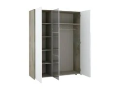 Armoire 200cm. 2 Portes Coulissantes Avec Miroirs Couleur Chêne Foncé Et Noir. Collection FOX