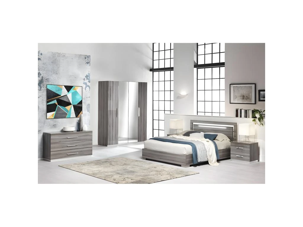 Structure en panneaux de particules, revêtement effet bois grisé. Finition laqué brillant. Poignées chromées.