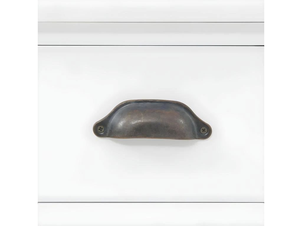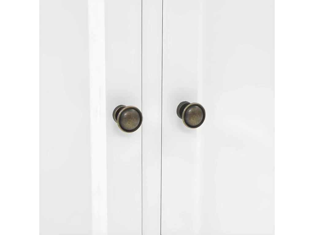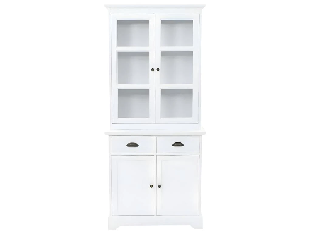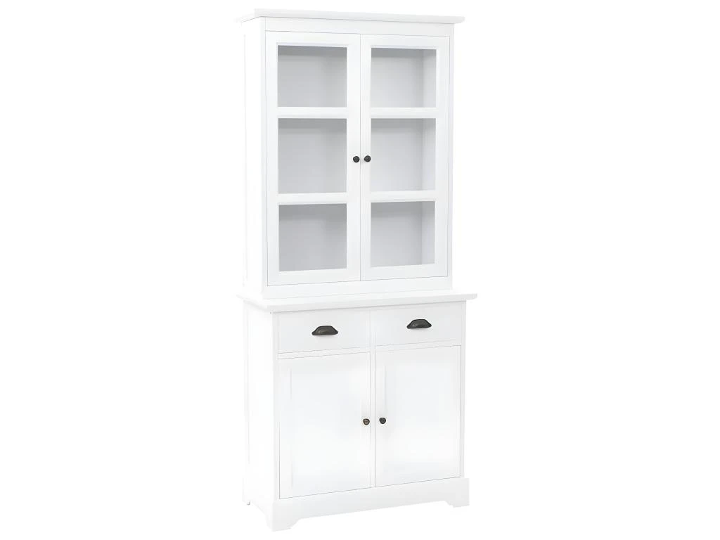 Le vaisselier est en MDF et décoré de poignées métalliques sur les portes et les tiroirs.