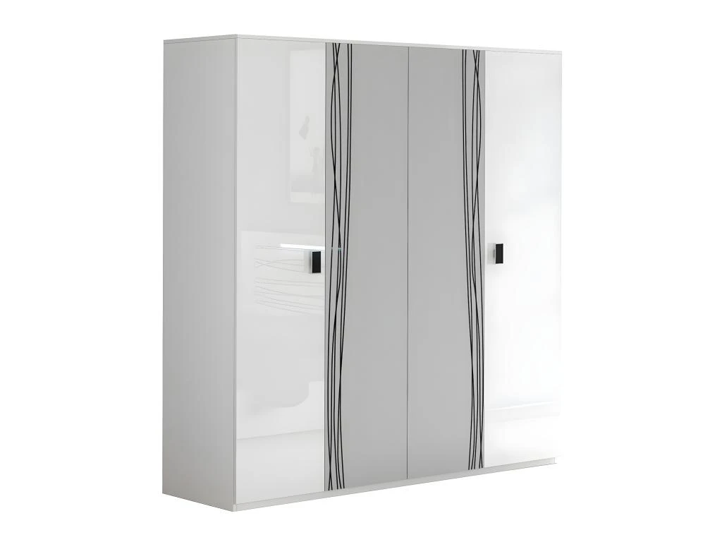 Armoire 4 Portes avec Miroir Blanche Sérigraphiée de la gamme Cadiry.