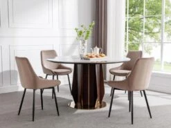 La chaise JOSETHE vous séduira par son élégance et son confort. Elle dispose d’un revêtement en velours et d’une structure travaillée en métal doré et sera ainsi un élément idéal de décoration dans votre séjour.