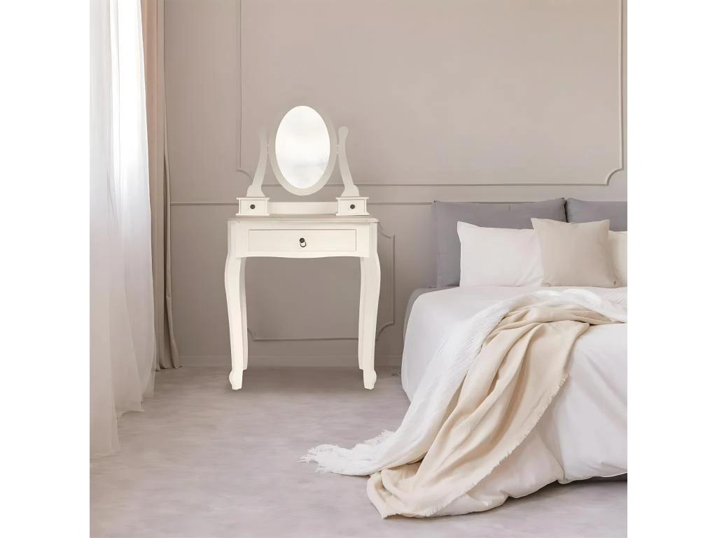 Coiffeuse Blanche Style Baroque avec Miroir Clemence.