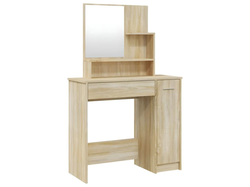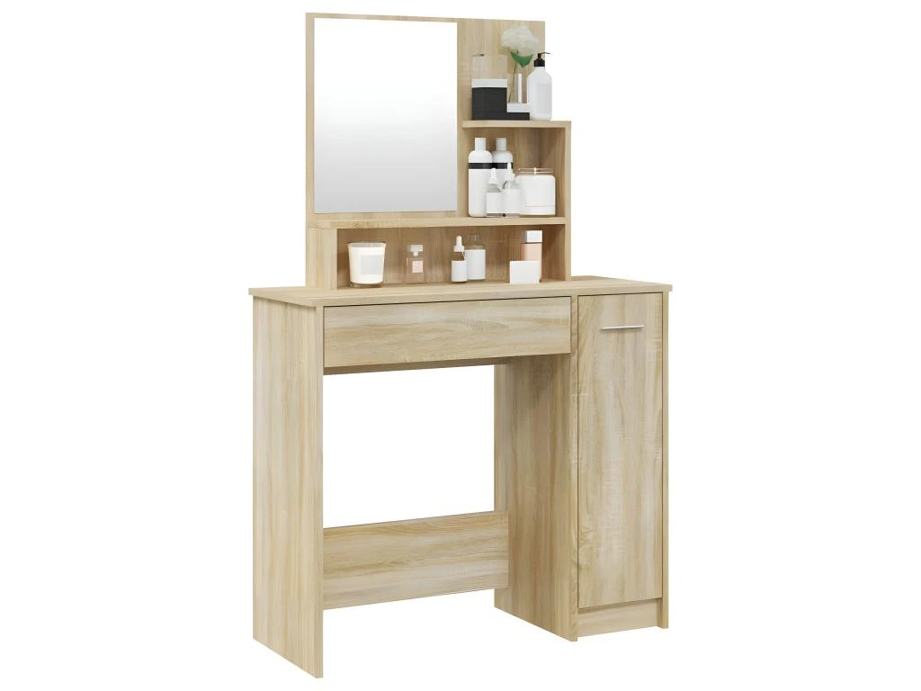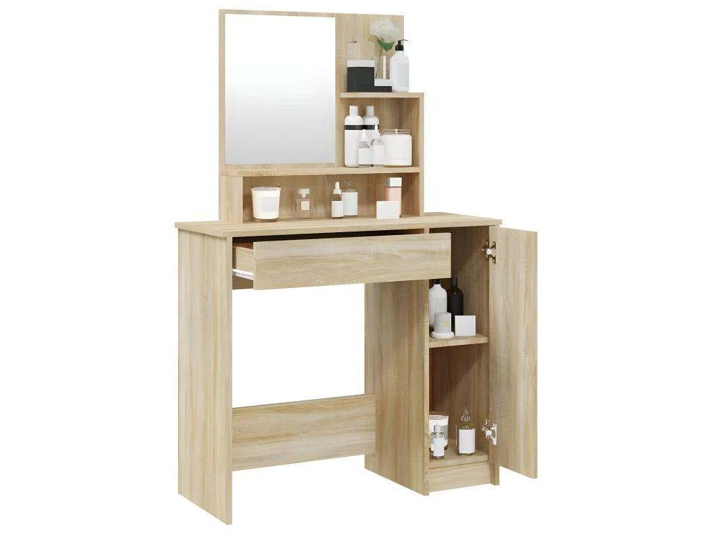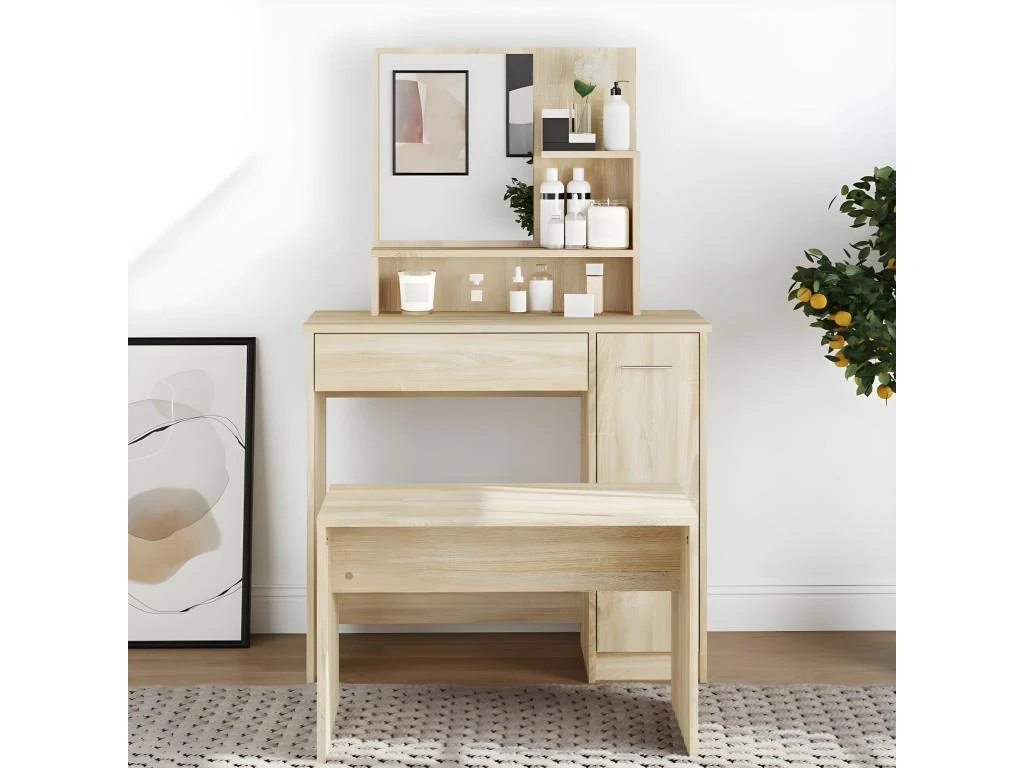 - Grand espace de rangement : le tiroir, les compartiments et les étagères ouvertes de la coiffeuse offrent des emplacements pour les articles de maquillage et gardent tout à sa place.