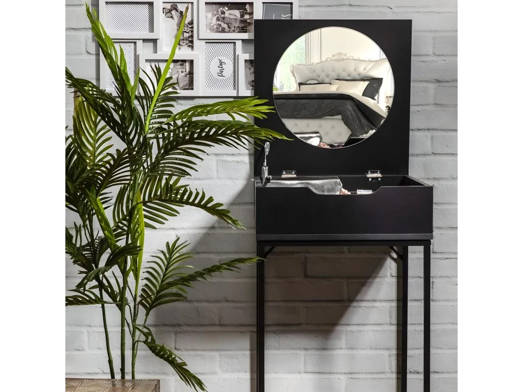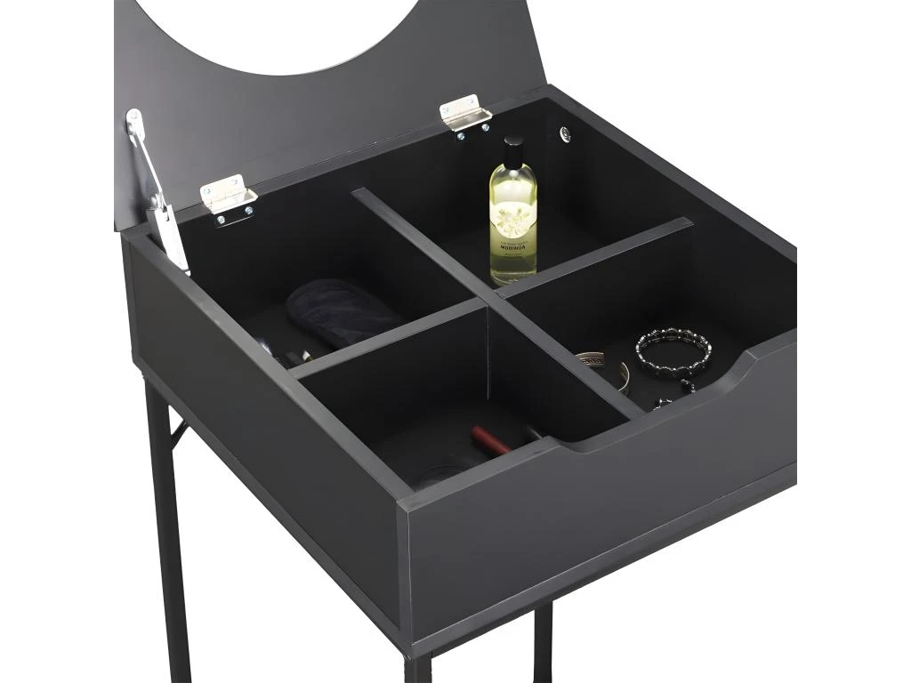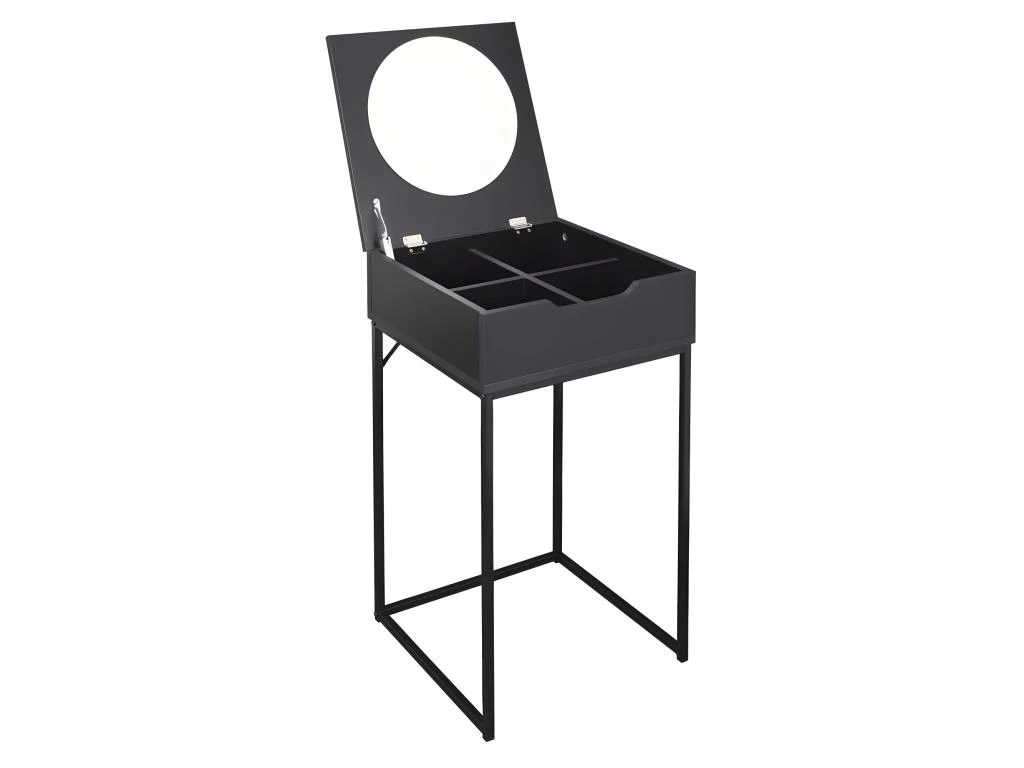 Informations complémentaires : Compacte – Plateau principal : 2 positions possibles (ouvert/fermé) – Rangement compartimenté – Miroir intégré