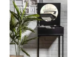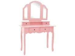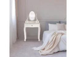 – CARACTÉRISTIQUES : Grâce à ses trois tiroirs et ses niches, vous trouverez suffisamment de place et d’espace de rangement pour tous vos articles de maquillage. Poignées tiroir effet diamant.
