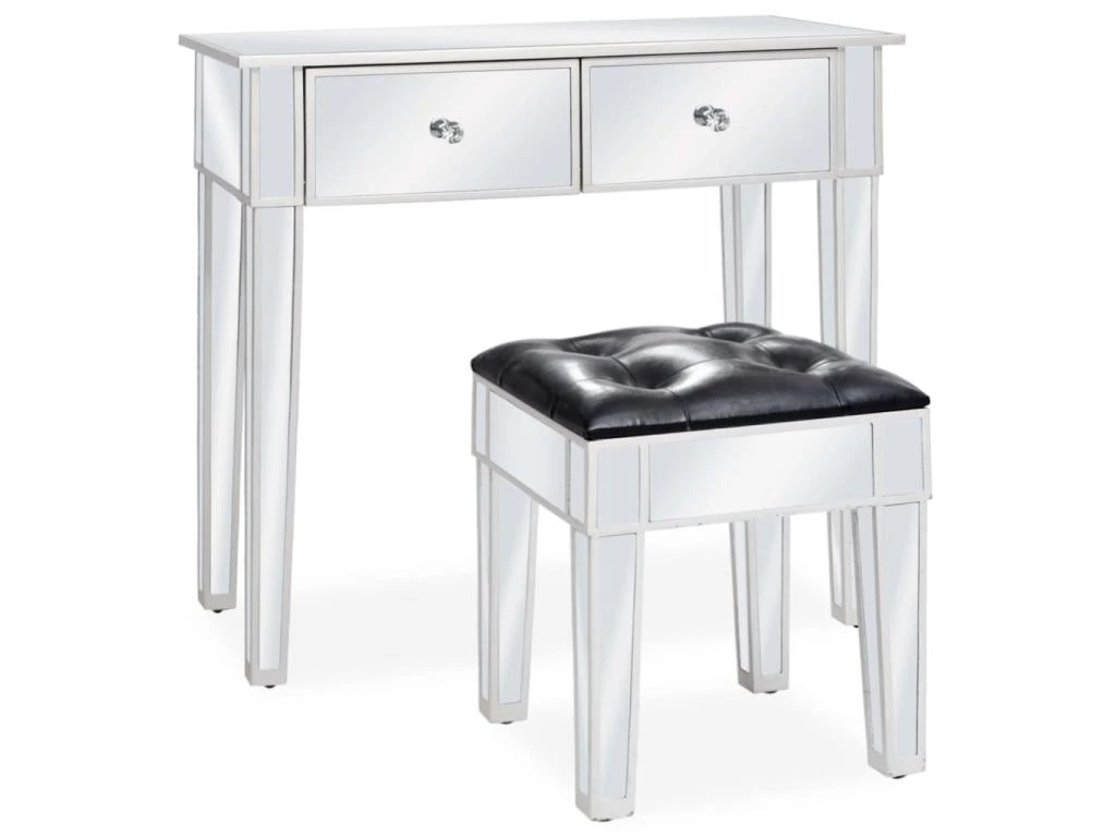 L’ensemble de table de maquillage est orné de verre à effet miroir élégant et possède un aspect raffiné.