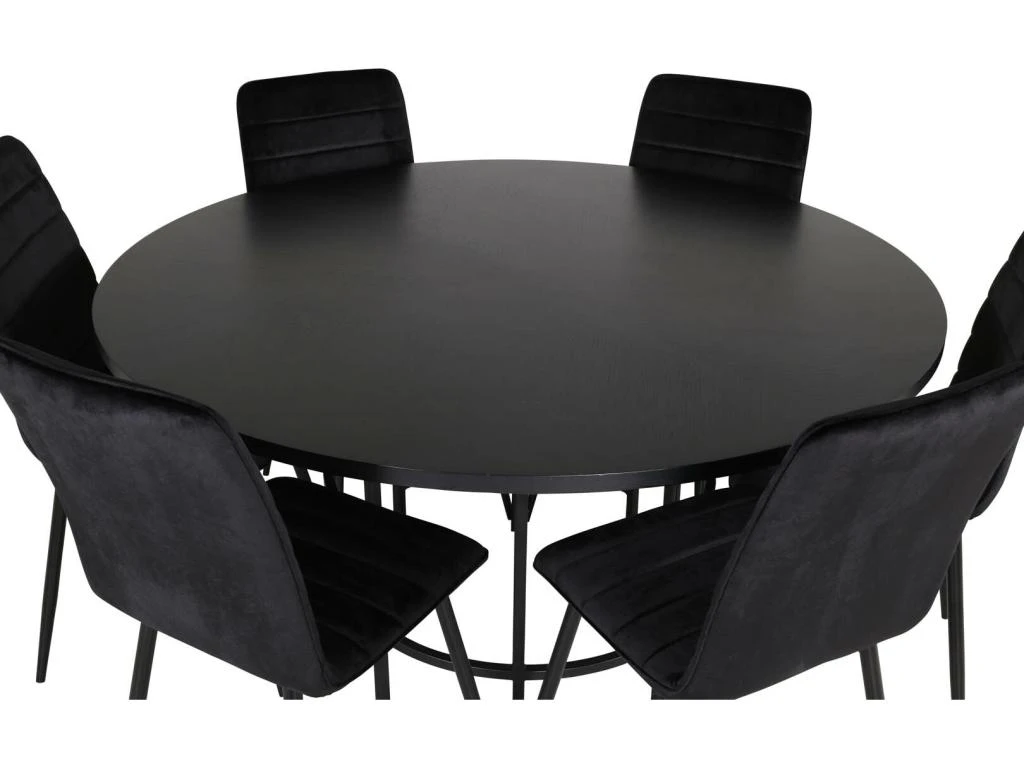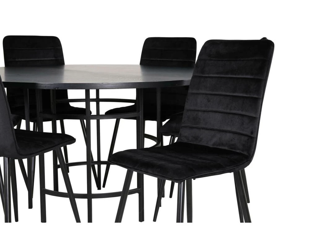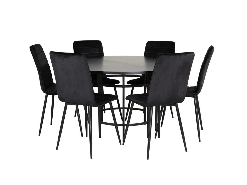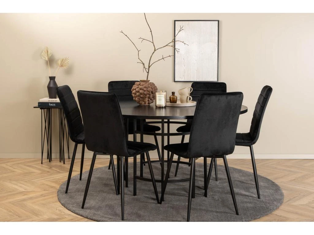 Jepara Ensemble Table, Table Teck Et 6 Velvet Deluxe Chaises Grisclair, Noir.