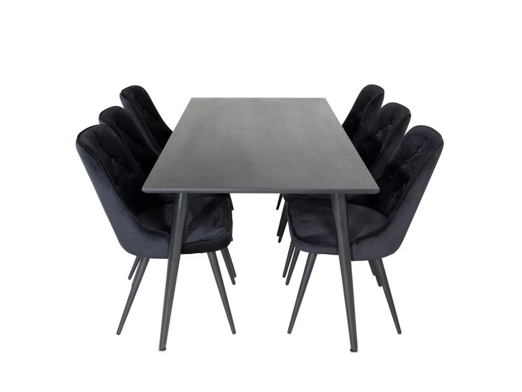 Jepara Ensemble Table, Table Teck Et 6 Velvet Deluxe Chaises Grisclair, Noir.