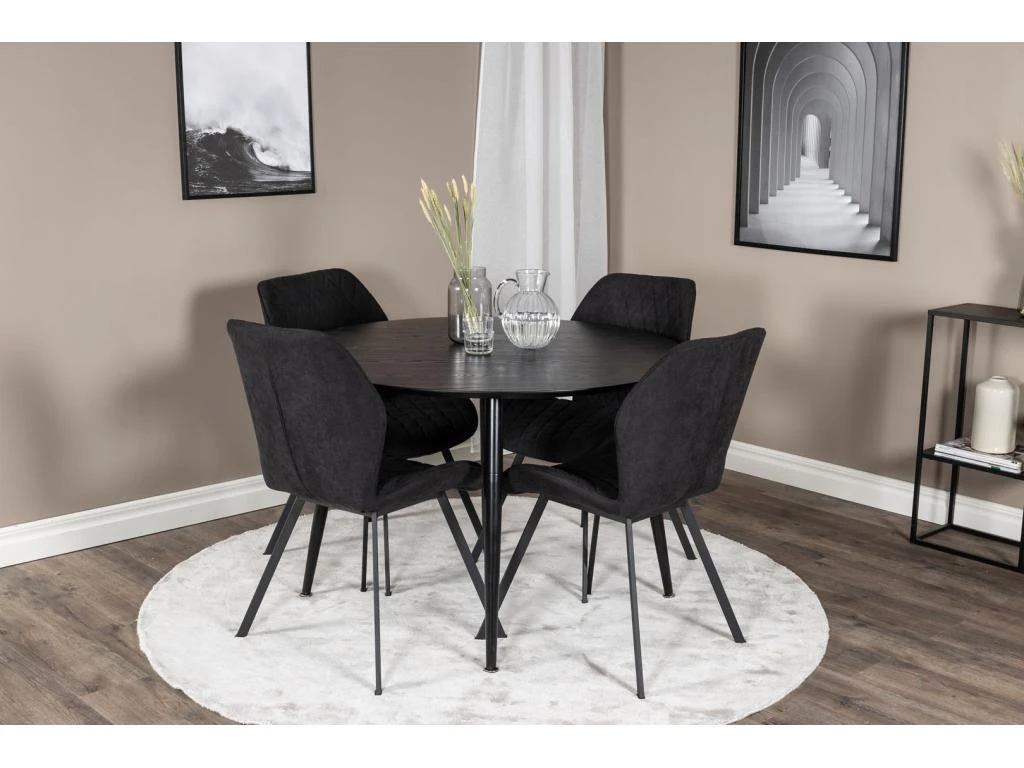 Ensemble CANNES Table + 4 Chaises Noir. Idéal Pour Cuisine Ou Salle à Manger.