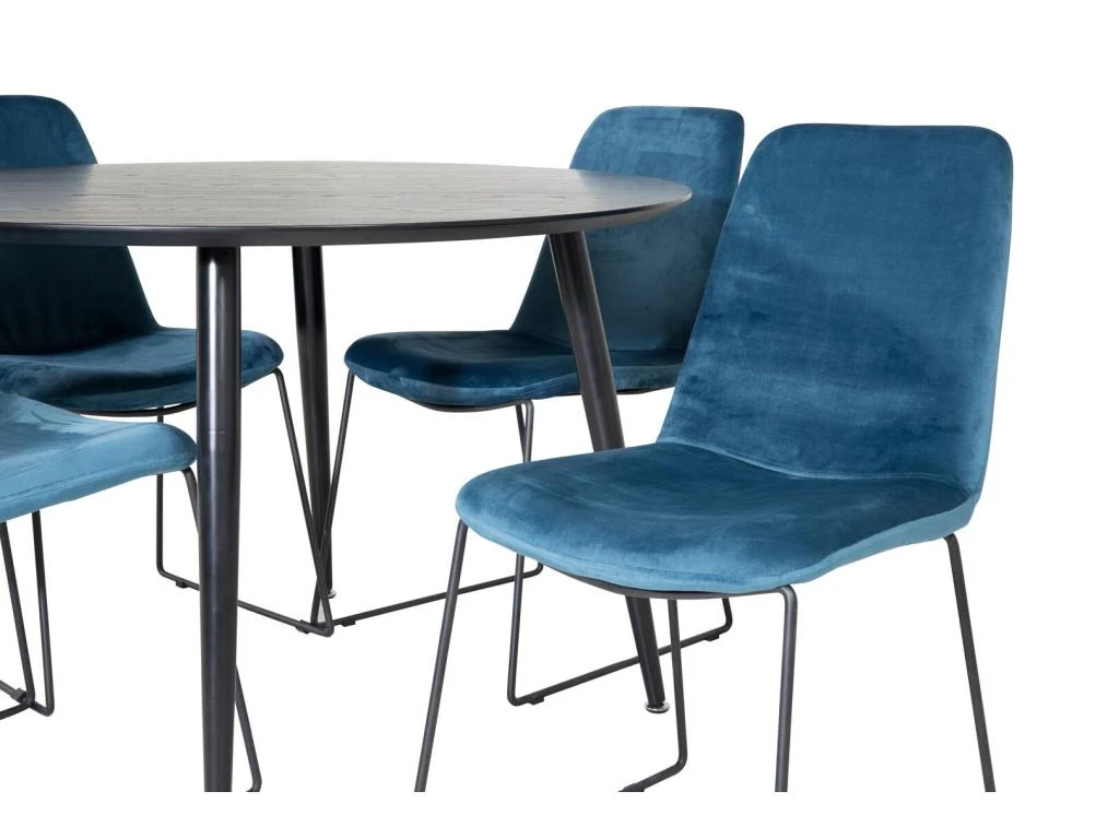PiazzaBLBL Ensemble Table, Table Noir Et 6 Pippi Chaises Velours Noir.