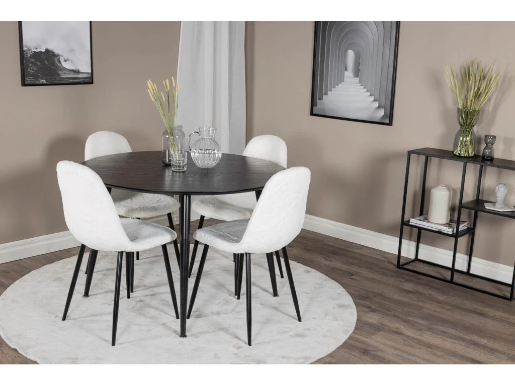 DippØ115BLBL Ensemble Table, Table Noir Et 4 Berit Chaises Velours Noir.