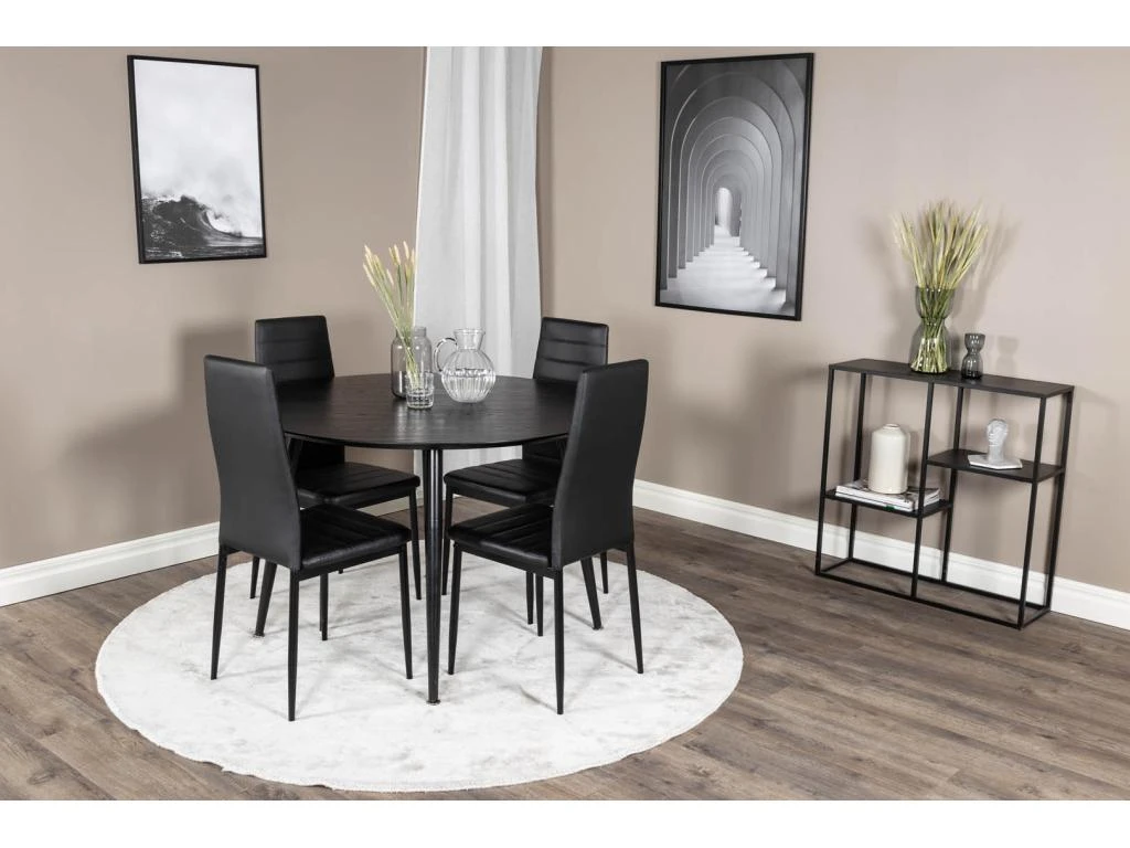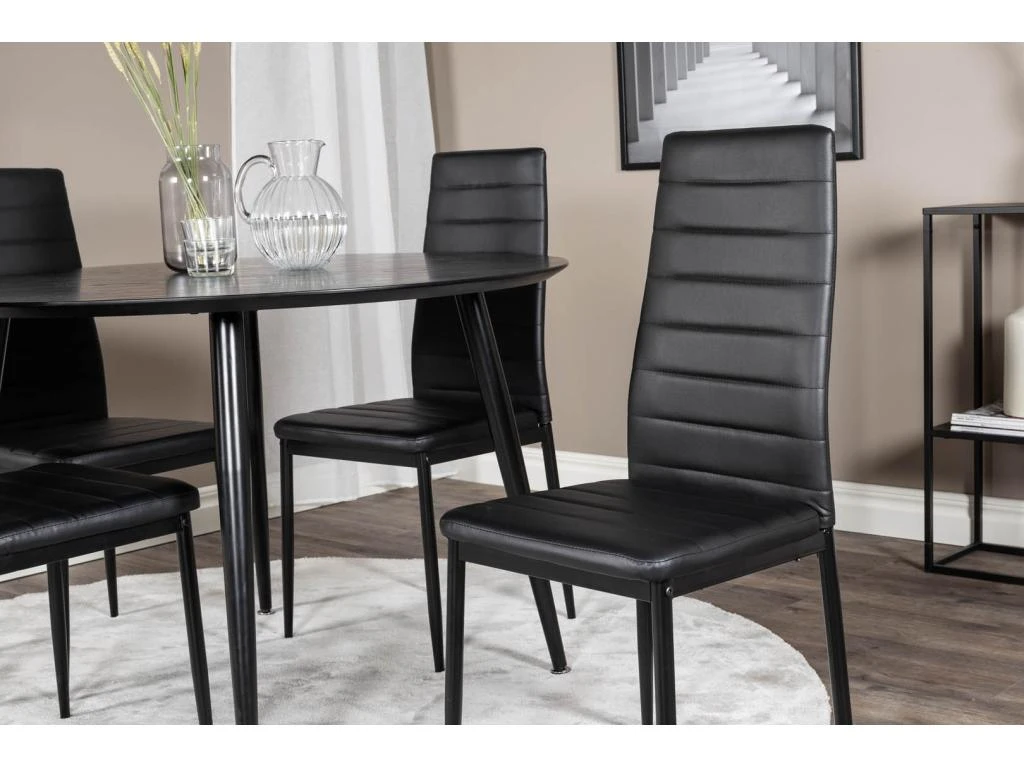 PiazzaBLBL Ensemble Table, Table Noir Et 6 Pippi Chaises Velours Noir.