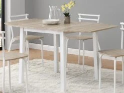 Ensemble Table + 4 Chaises En MDF Et MĂ©tal – Naturel Et Blanc – MAEWIN