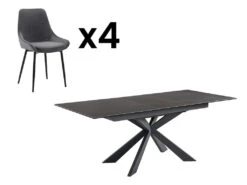 Ensemble Table + 6 Chaises – Anthracite, Gris Et Naturel FoncĂ© – SERANI