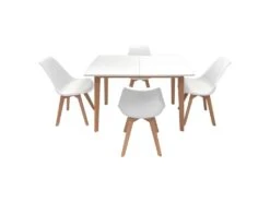 Ensemble Table Extensible 120/160cm HELGA Et 4 Chaises NORA Blanc – HAPPY GARDEN