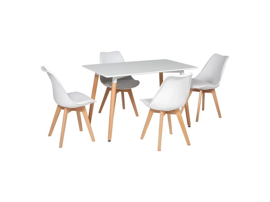Avec son style épuré et tendance, l’ensemble scandinave, table PIA et chaises NORA, s’adaptera à tous les intérieurs et à toutes les décorations. Vous pourrez décider de l’installer aussi bien dans une cuisine que dans une salle à manger. La structure des éléments est en bois massif pour assurer robustesse, stabilité et élégance. Vous serez confortablement installé dans les chaises de cet ensemble grâce aux dossiers enveloppants.