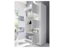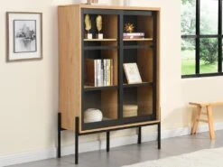 Vitrine Avec 2 Portes En Verre Et éclairage LED – Décorée De Rayures Dorées – Hauteur 180cm – Noir