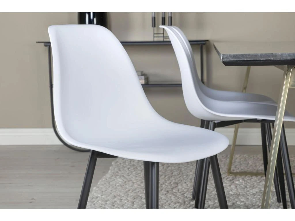BiancaROWW Ensemble Table, Table Chêne Plaqué Blanc Washed Et 4 Emma Chaises Velours Gris,noir.