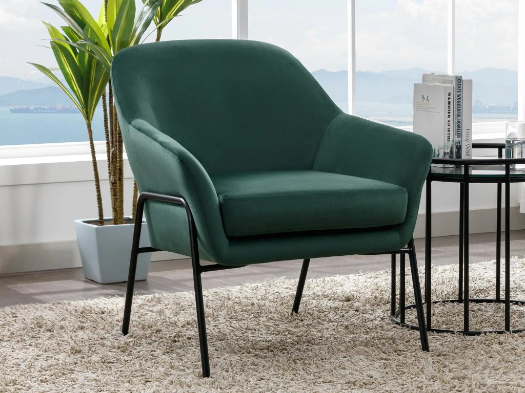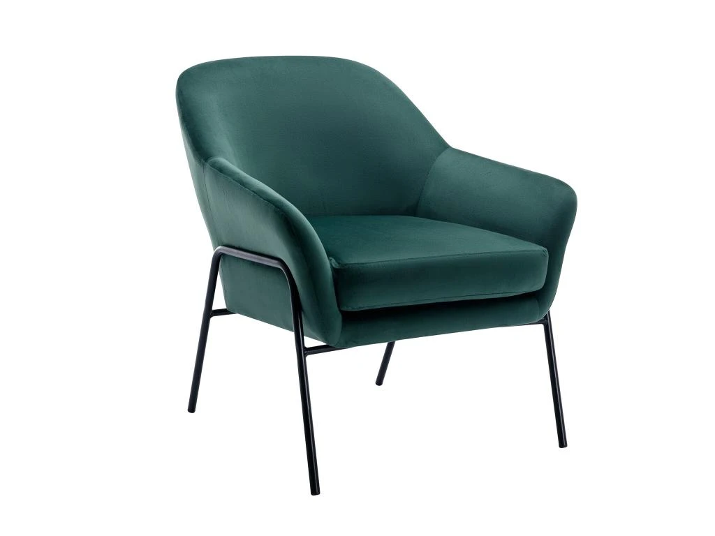 Vous recherchez un fauteuil aussi moderne que confortable ? N’attendez plus et choisissez le fauteuil CERITA ! Ses pieds fins en métal noirs lui donnent un aspect charme vintage tandis que ses couleurs design apporteront de la couleur à votre salon ! Profitez également de son revêtement en velours doux au toucher.