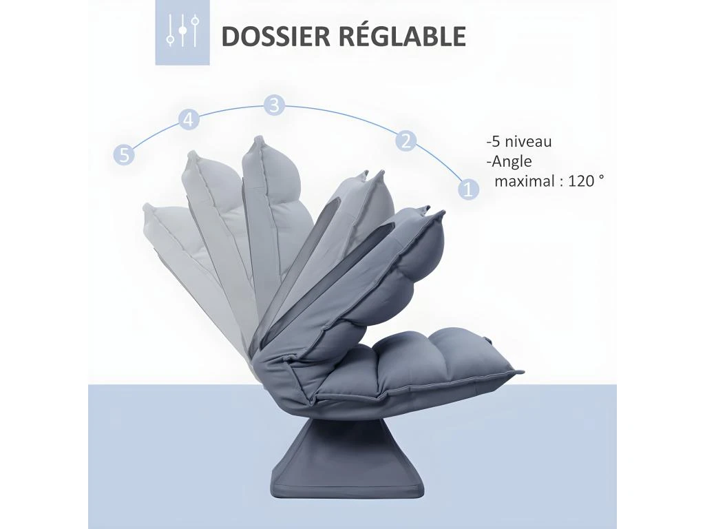 – Grande polyvalence, dossier inclinable 5 positions (3 vers l’arrière, 2 vers l’avant) vous permettant de l’utiliser en tant que fauteuil, chaise longue ou même lit d’appoint