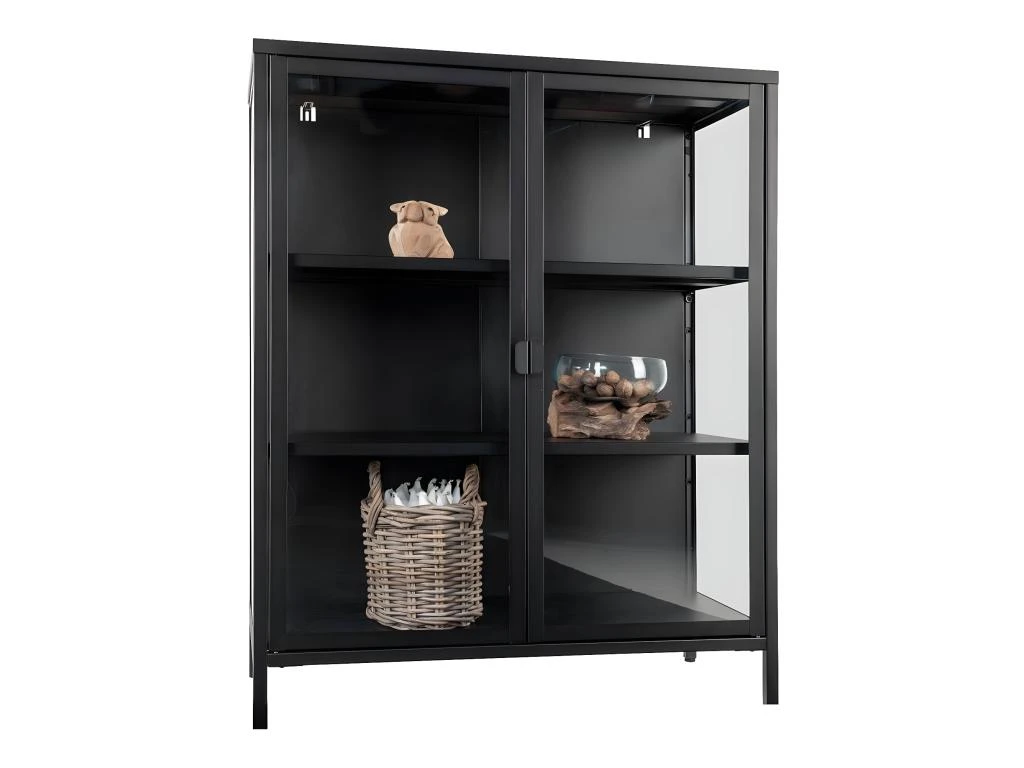 Vitrine 2 Portes Verre et Acier Noir H101cm de la gamme Hendra.