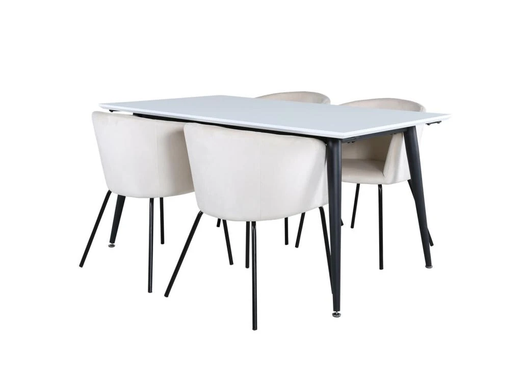 DippØ115BLBL Ensemble Table, Table Noir Et 4 Berit Chaises Velours Noir.