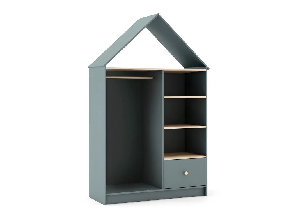 Dressing Cabane Enfant MDF et Pin Coloris Gris Vert et Naturel de la gamme Kaina.