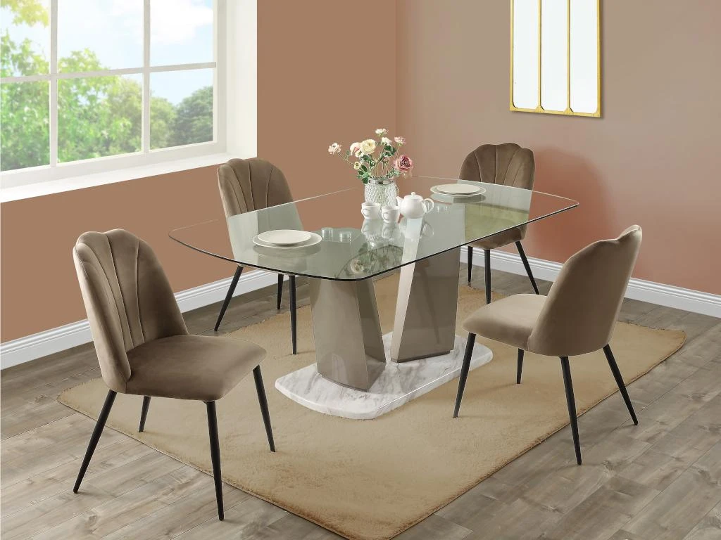 Lot De 2 Chaises ROSARIO – Effet Velours Et Métal Noir – Taupe