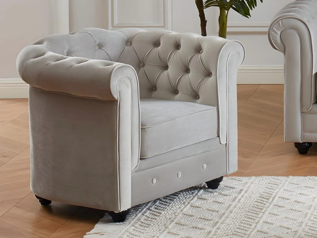 Vous recherchez un canapé qui allie luxe et raffinement intemporel ? Optez pour le CHERTERFIELD en velours. Avec son dossier capitonné, il incarne un style classique et sophistiqué qui ajoute une touche d’élégance intemporelle à n’importe quel intérieur. Doté d’une silhouette iconique, ce canapé allie le charme du design Chesterfield avec le luxe du velours, créant ainsi un meuble majestueux qui attire les regards et offre un confort inégalé.